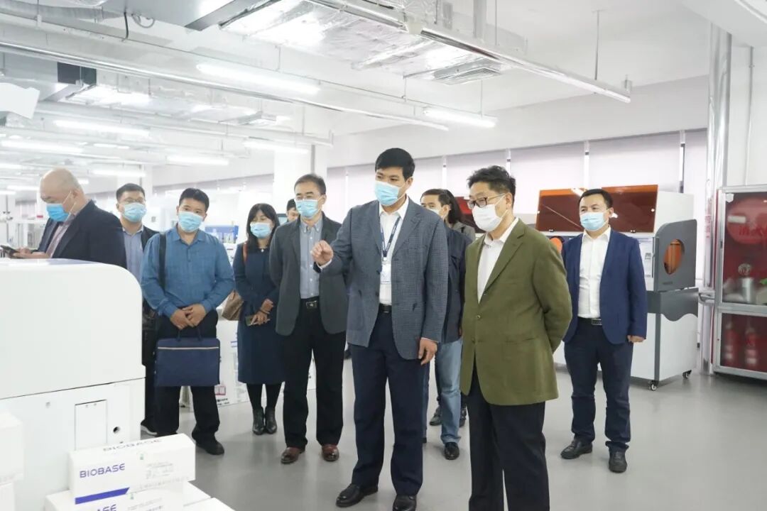 在王長勇副總裁的帶領下,調研組領導參觀了防疫物資進出口企業共同體展廳,了解了生物安全防護、體外診斷、康復醫療、消毒滅菌等百余種創新產品。劉曉江副會長詳細詢問了公司產品出口及貿易方式等情況。座談會上,郭依坤副主任介紹了濟南自貿區相關工作開展情況。劉曉江副會長最后發表總結講話。